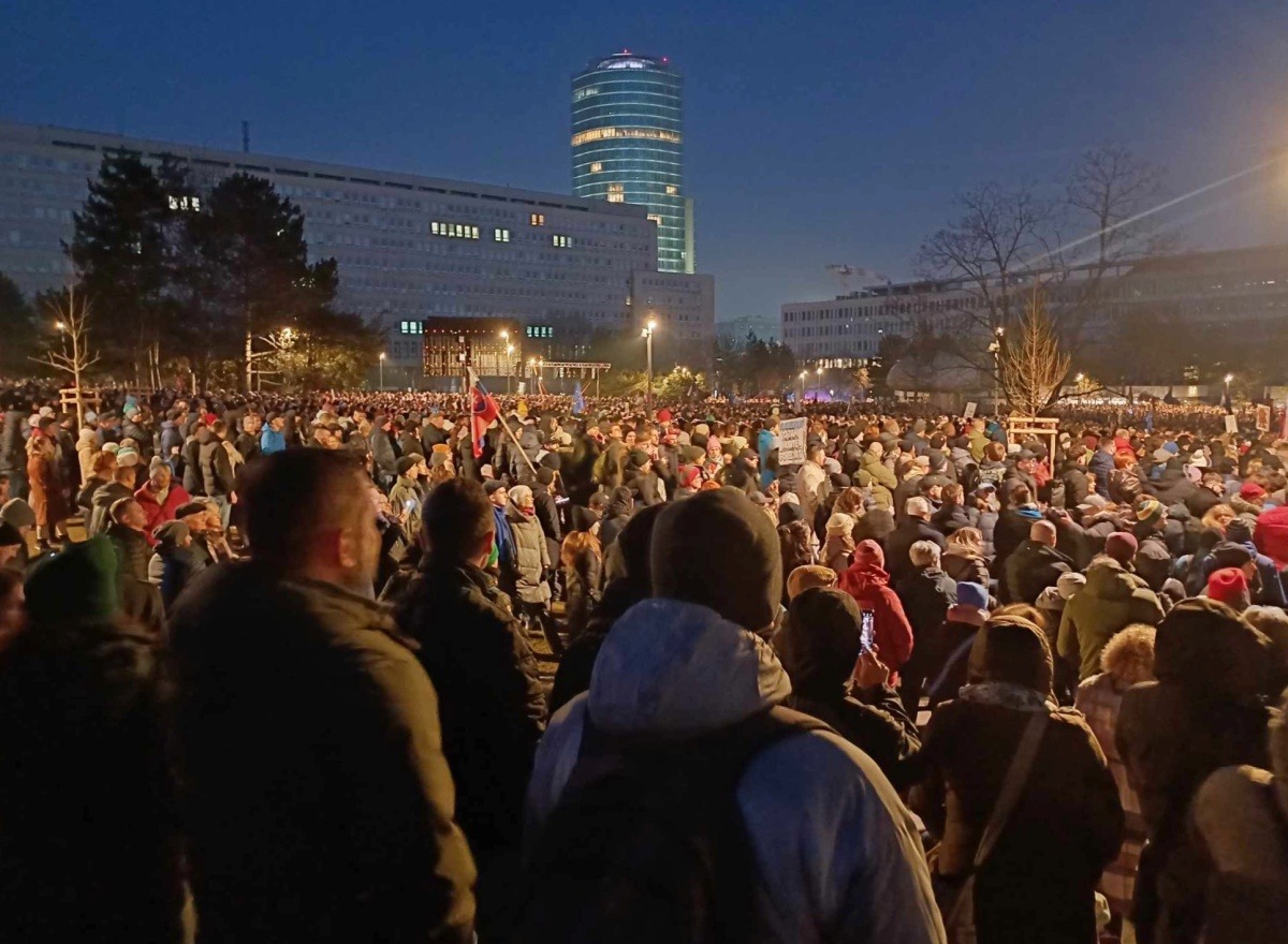 Slovenskému premiérovi patrně do smíchu není. Na Náměstí svobody ho k rezignaci vyzývá zhruba stejný počet demonstrantů, který premiéra vypískal po vraždě novináře Jána Kuciaka v roce 2018. Tenkrát Fico tlak veřejnosti nevydržel.
